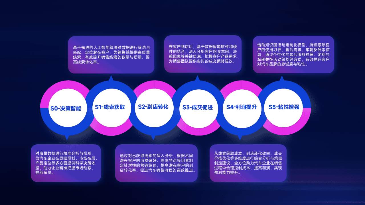 通过拓宽潜在客户来源、、、优化线索分配并提高到店转化率,,以增强销售效率。。。。同时,,利用线索数据不断优化分析模型,,,有效提升转化率,,,扩大营销影响力。。。